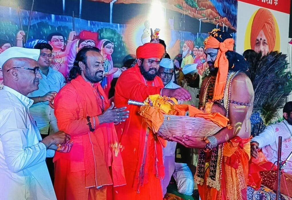 नेवासा(प्रतिनिधी) नेवासा येथे संत तुकाराम महाराज बीजेच्या निमित्ताने संत तुकाराम महाराज मंदिर प्रांगणात महंत गुरुवर्य श्री उध्दवजी महाराज मंडलिक यांच्या मार्गदर्शनाखाली भागवताचार्य हभप अंकुश महाराज जगताप यांच्या सुश्राव्य वाणीतून सुरू असलेल्या श्रीमद भागवत कथेमध्ये भगवान श्रीकृष्ण परमात्म्याचा जन्म सोहळा संत महंतांच्या उपस्थितीत पुष्पवृष्टी करून साजरा करण्यात आला. यावेळी झालेल्या श्रीकृष्ण जन्म सोहळयाच्या प्रसंगी श्रीराम साधना…
